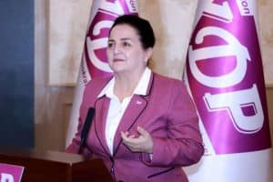 Präsidentschaftskandidatin Maksuda Varisova sprach zu den Wählern in Jizzakh.