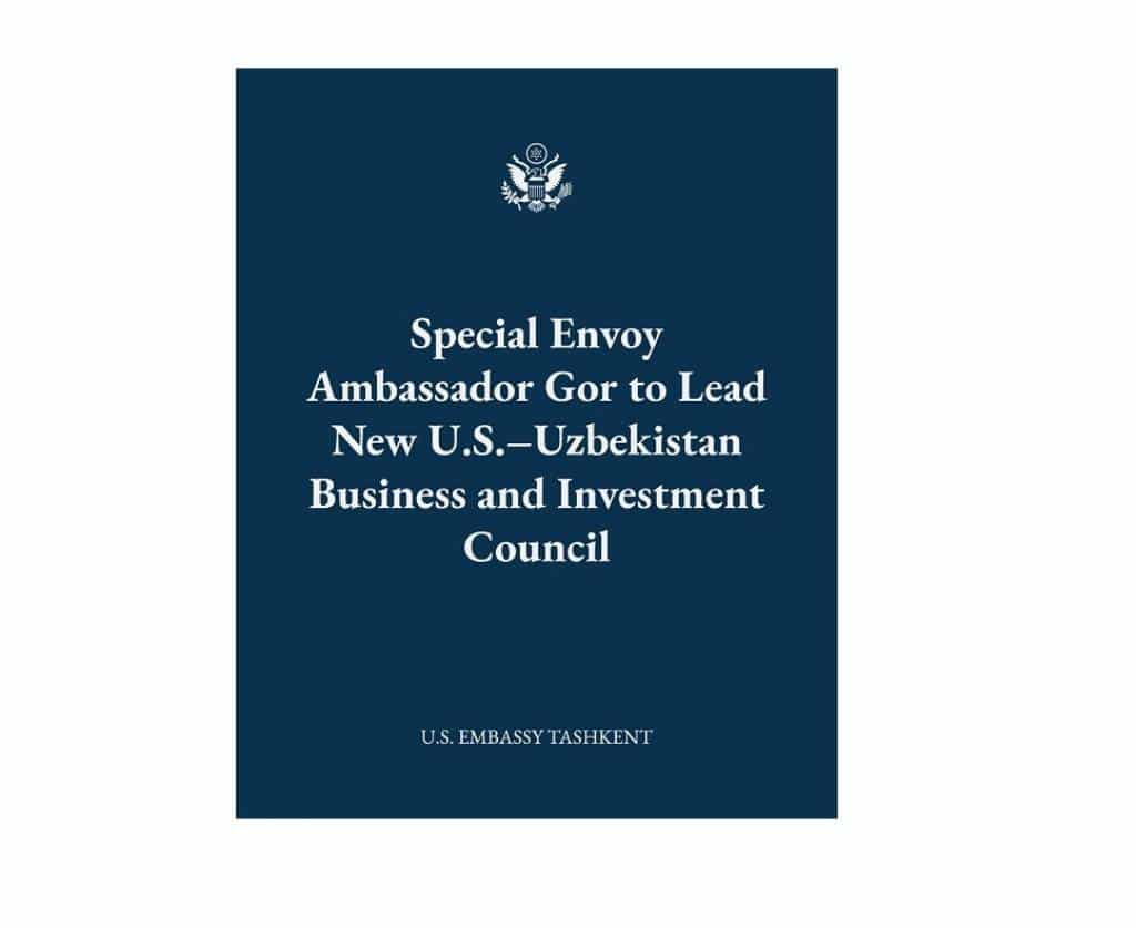 According to the U.S. Embassy in Tashkent, the newly established U.S.-Uzbekistan Business and Investment Council will be co-chaired on the U.S. side by the U.S. Special Envoy to South and Central Asia, Ambassador Sergio Gor.