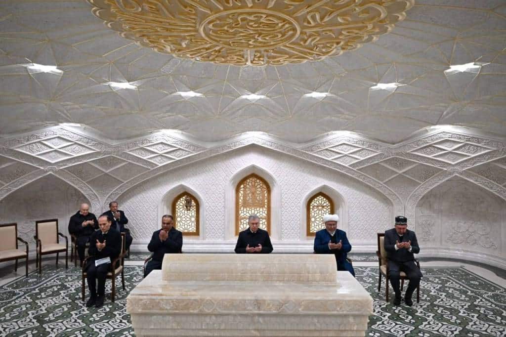 По традиции, глава нашего государства начал свой визит в Самарканд с посещения мавзолея Имама Бухари. Были прочитаны аяты Корана и произнесены молитвы.